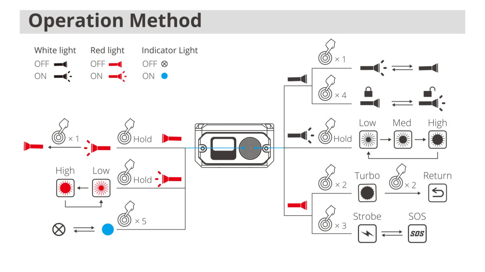 • Duální LED: Všestranné možnosti osvětlení s výkonnými bílými LED pro soustředěné osvětlení a červenými LED diodami vhodnými pro noční vidění, díky čemuž se přizpůsobí různým prostředím.