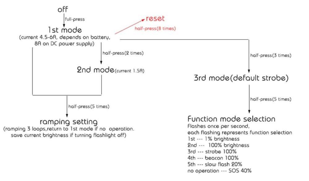 • Indikátor nízkeho nabitia: Svetlo automaticky zníži hladinu, keď je napájanie nízke a keď napätie klesne pod 3,1 V, začne blikať každé 2 sekundy