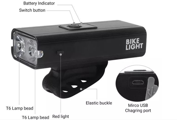 Přední světlo na kolo Boruit BK04 se 2 LED, 1000 lumenů, dosah 100 metrů
