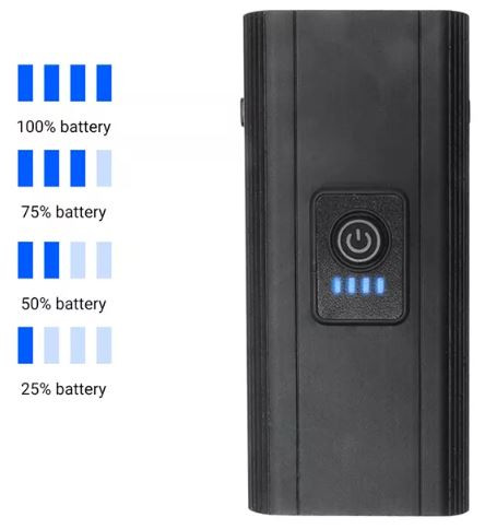 Charakteristiky: Mantenga presionado el interruptor para encender el destello rojo y azul. Indikátor baterie 25 % -50 % -75 % -100 %. Interruptor para encontrar la luz indicadora (la luz está siempre encendida). Busque luces rojas en ambos lados (las luces están siempre encendidas).