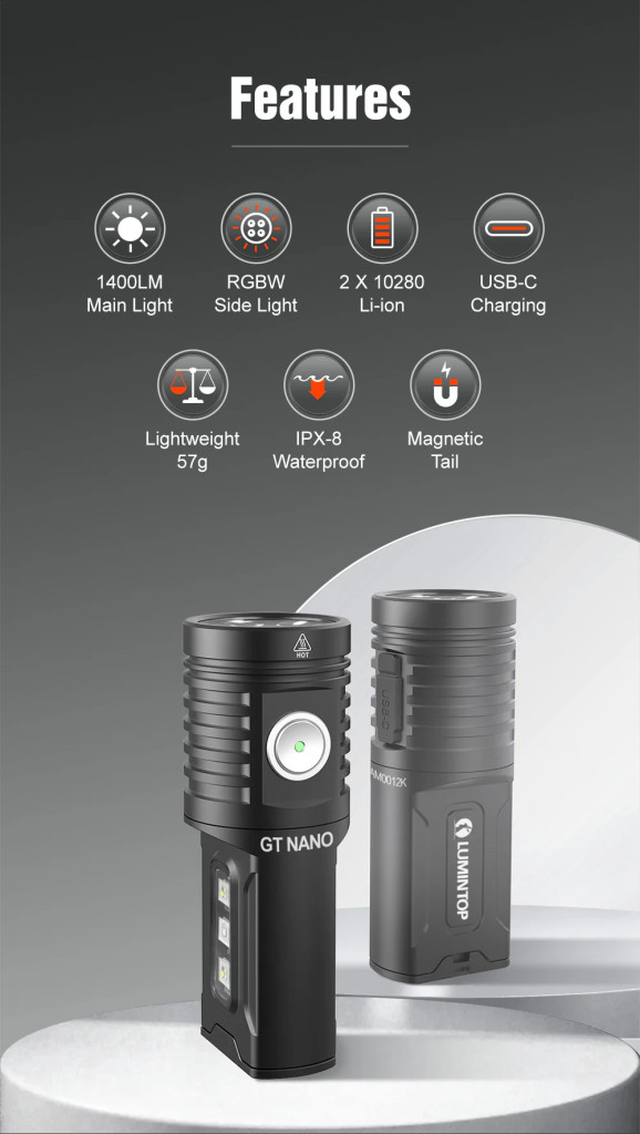 GT Nano 5.0 multifunkčné EDC svietidlo 1400 lúmenov s UV svetlom
