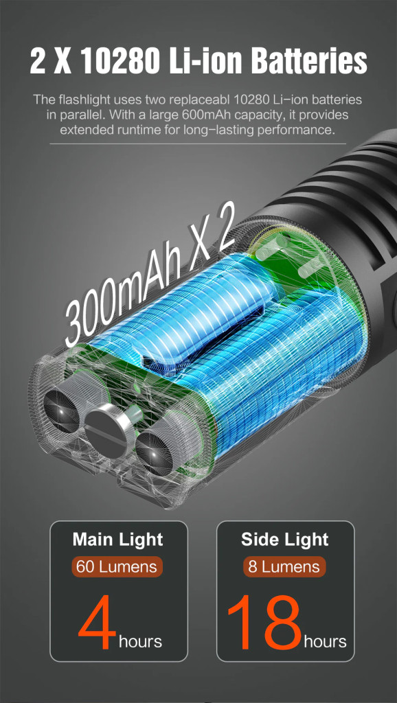● Silné osvetlenie: LED s výkonom 1400 lúmenov a dosahom 180 m – skvelé pre kempovanie a turistiku.