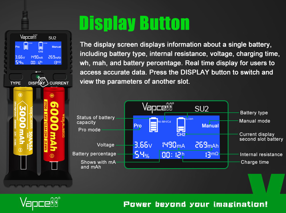 Vapcell SU2 rýchlonabíjačka na batérie Ni-Mh, 1,5V a 3,6V Li-ion
