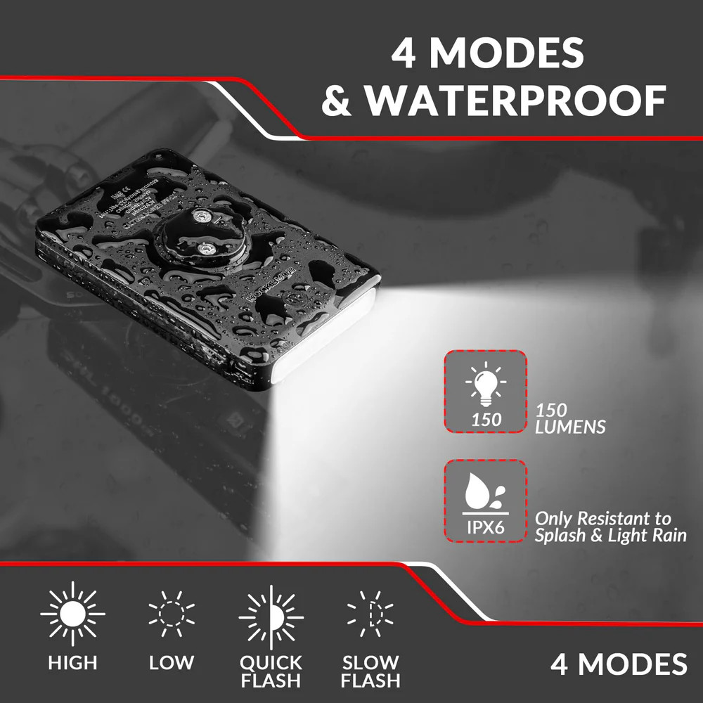 • Viac režimov osvetlenia: 4 režimy – silné svetlo (150 lm), slabé svetlo (80 lm), dvojitý záblesk a dýchajúci záblesk, až 12 hodín prevádzky pri vysokej svietivosti.