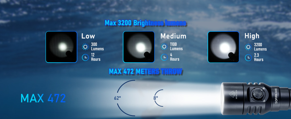 SOFIRN SD06 potápačská baterka 3200lm Výkonná potápačská baterka SFT70 LED