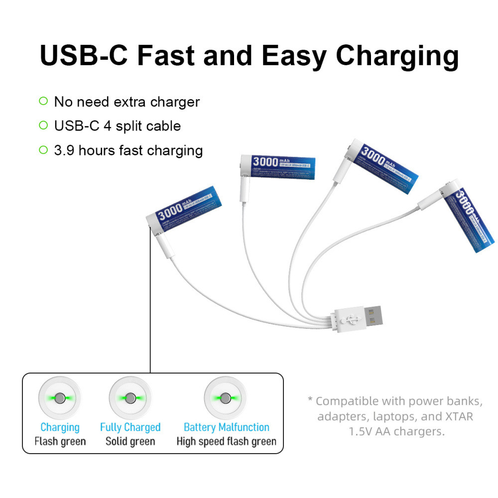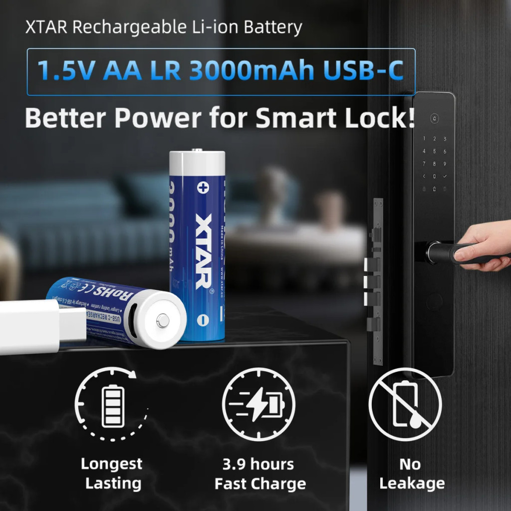 • 4× XTAR AA 1,5V 3000mAh USB-C batérie