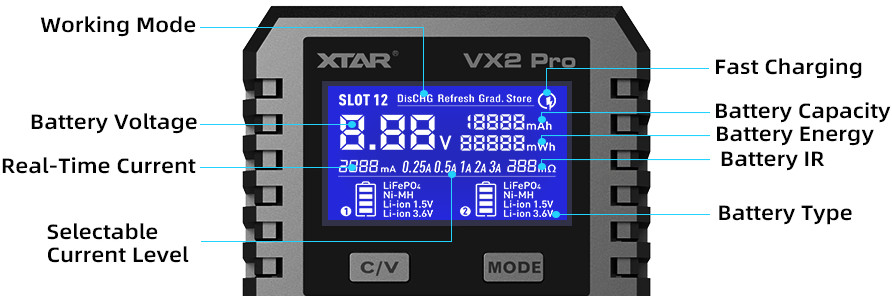 VX2 Pro je dvojslotová smart nabíjačka s nezávislým ovládaním, ktorá ponúka viac než len nabíjanie – s množstvom profi funkcií a jednoduchým používaním