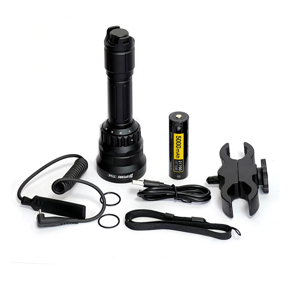 SPERAS TH4 4-v-1 zaostriteľná lovecká baterka s voliteľnými bielymi, červenými, zelenými a infračervenými svetlami