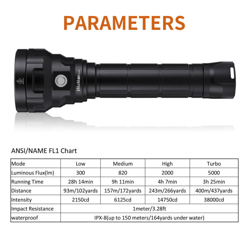 Wurkkos DL40 Výkonné potápěčské světlo 5000lm se 4*LH351D 90CRI 26650 Podvodní svítilna 5000K